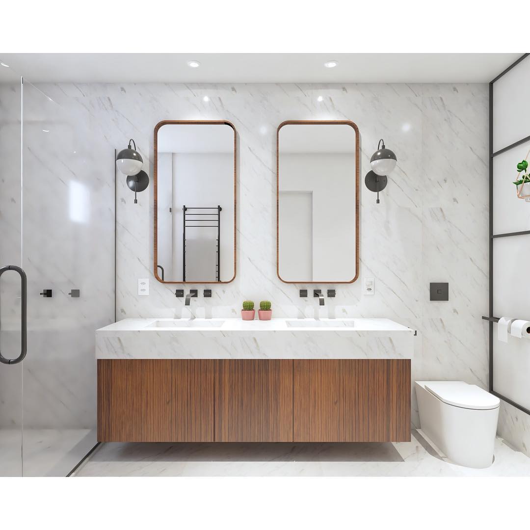 Gostou das estéticas dos banheiros brancos? Essa cor permite que sua criatividade voe solta, então abra a sua mente para todas as ideias e veja quais são as que mais agradam a sua família!